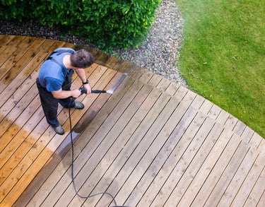 Soin des terrasses en bois : Les terrasses en bois nécessitent un entretien particulier. Nous les nettoyons délicatement et appliquons un traitement de protection pour préserver leur beauté naturelle et leur longévité.